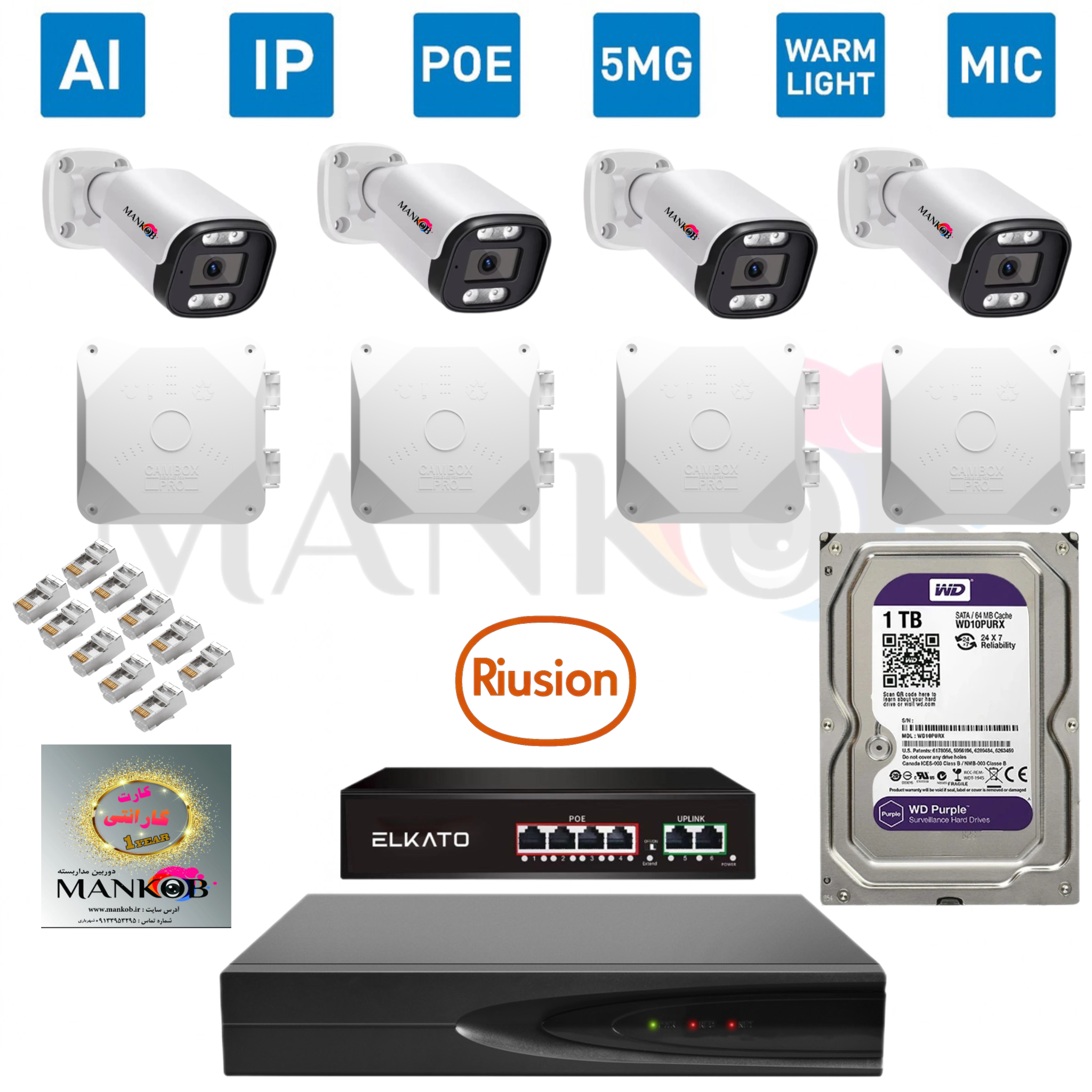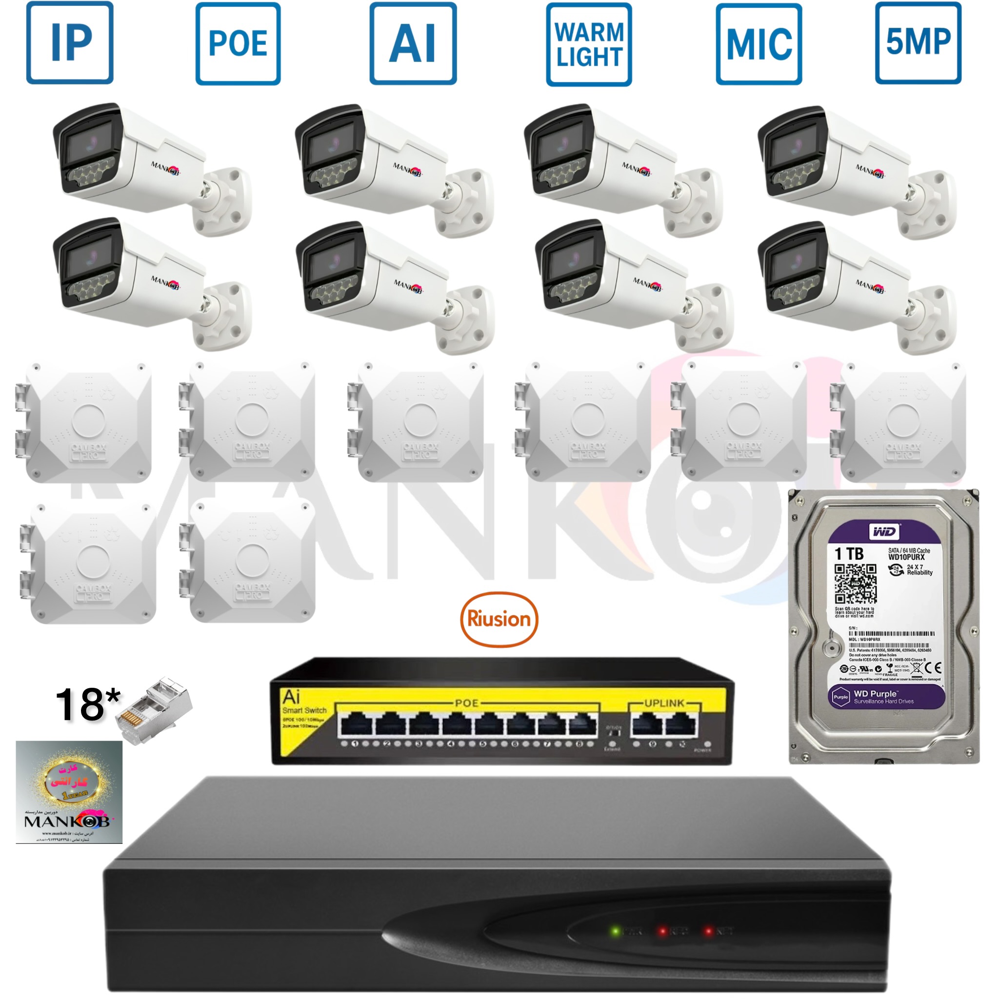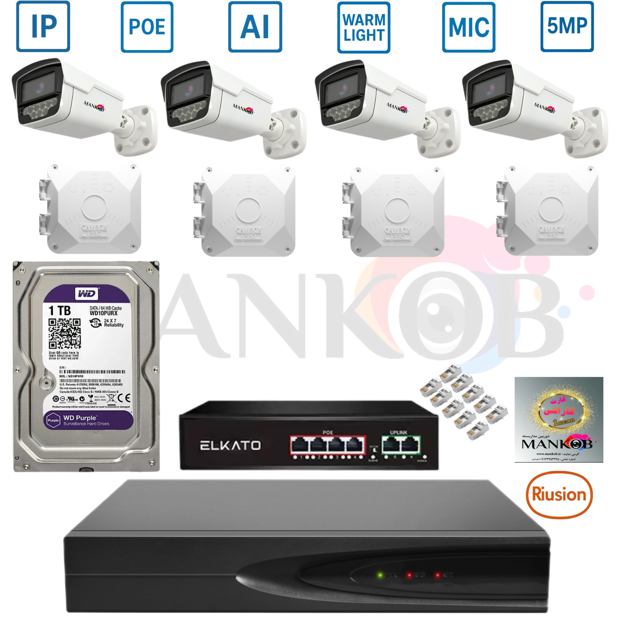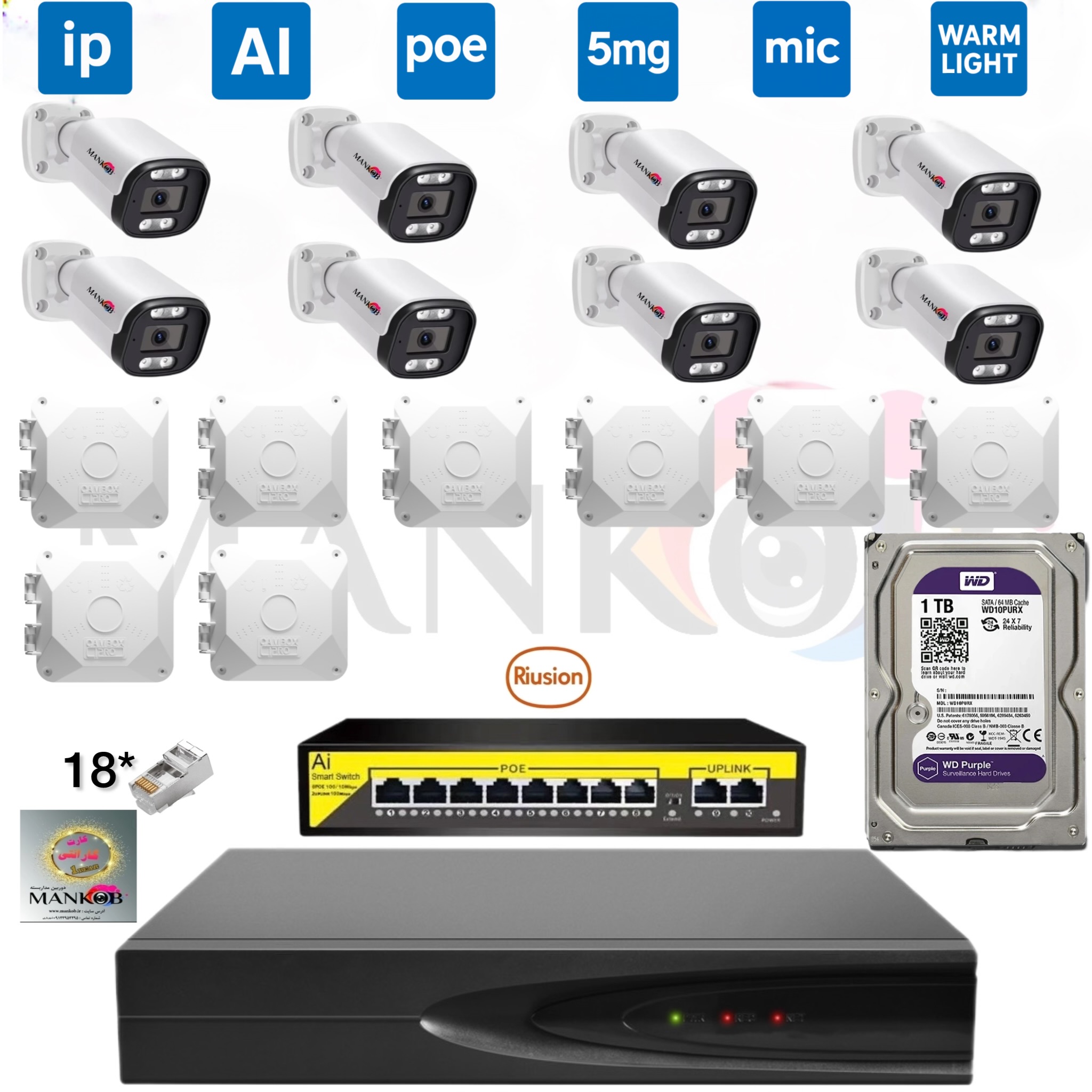 - قطعات و لوازم جانبی: مانند کابل شبکه، کمباکس، آداپتور، سوکت و تجهیزات جانبی مورد نیاز برای نصب حرفهای.