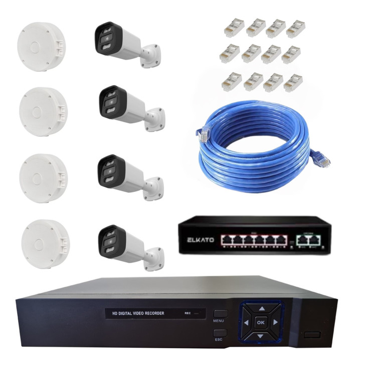 پکیج دوربین مداربست ip poe تحت شبکه 4دوربین برد ۴مگاپیکسل لنز ۵مگاپیکسل بدنه فلزی