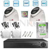 پکیج دوربین مداربسته ۲دوربین AHD برد 4653hs رزولیشن 5مگاپیکسل دام پلاستیکی دید در شب رنگی میکروفندار