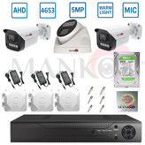 پکیج دوربین مداربسته 3دوربین AHD برد 4653hs رزولیشن 5مگاپیکسل بدنه پلاستیکی دید در شب رنگی میکروفندار