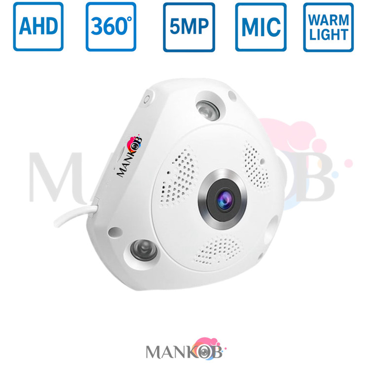 دوربین fisheys چشم ماهی ۳۶۰درجه ahd 5مگاپیکسل میکروفندار دید در شب رنگی وارم لایت
