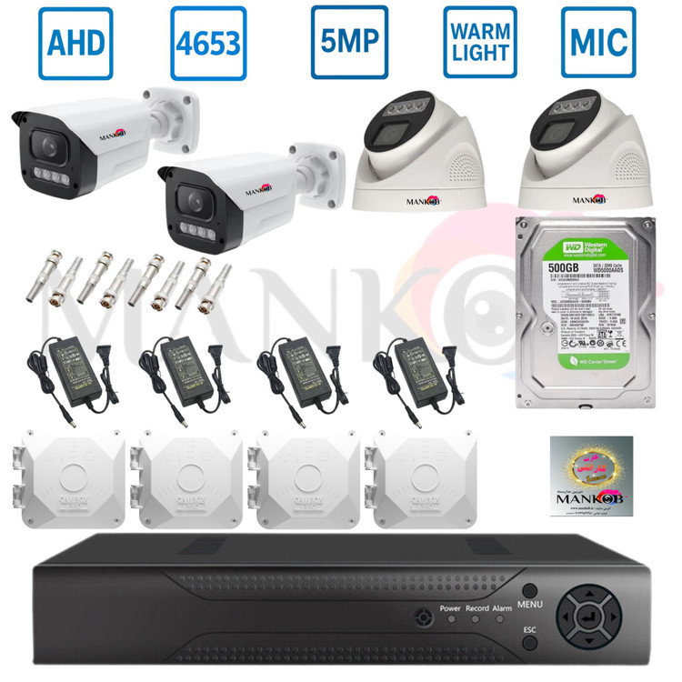 پک کامل دوربین مداربسته AHD ۵ مگاپیکسل با دید در شب رنگی و ضبط صدا