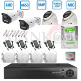 پکیج دوربین مداربسته ۴دوربین برد ۴۶۵۳hs رزولیشن 5مگاپیکسل بدنه پلاستیکی دید در شب رنگی میکروفندار