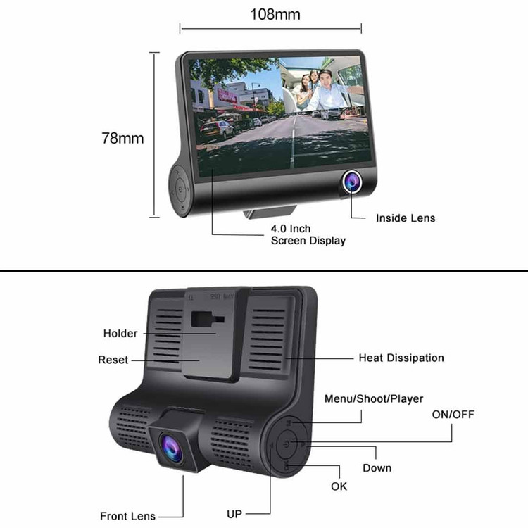 دوربین خودرو سه لنزه با کیفیت 1080P Full HD