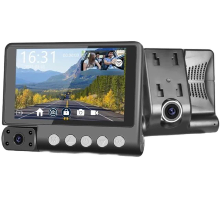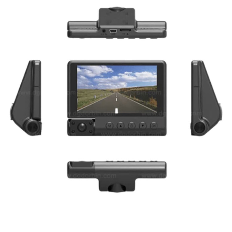دوربین حرفهای سه کاره ثبت وقایع خودرو که دارای سه لنز، که به همراه یک مانیتور لمسی 4 اینچی از نوع IPS است این دوربین ویژگی ضبط تصاویر و ویدیو از سه زاویه مختلف را دارد.