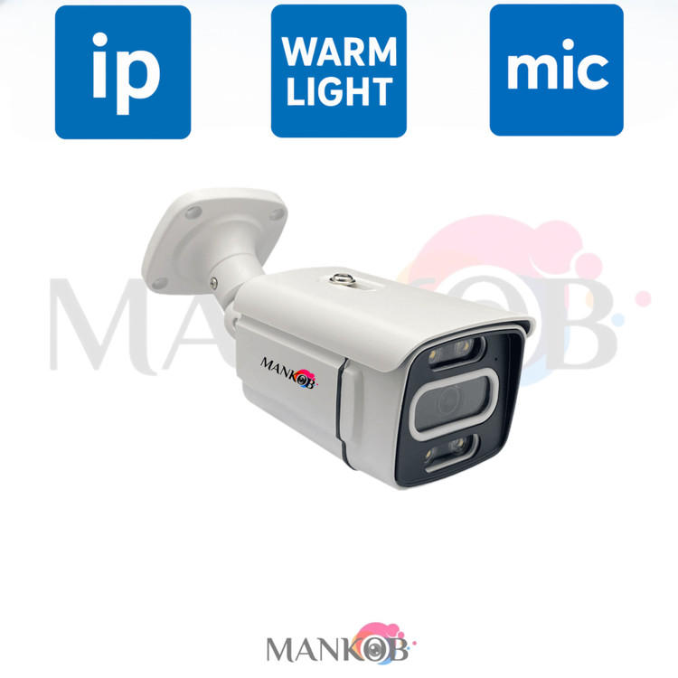 دوربین مداربسته ۴ مگاپیکسل IP بدنه فلزی وارم لایت با میکروفن داخلی – دید در شب رنگی واقعی