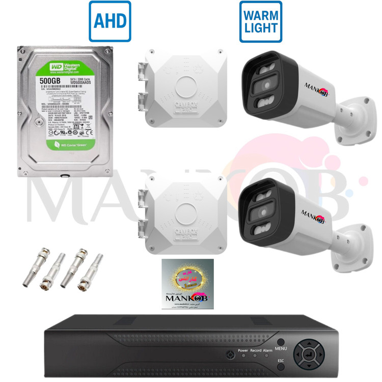 پکیج دوربین مداربسته AHD دو دوربین منکوب،